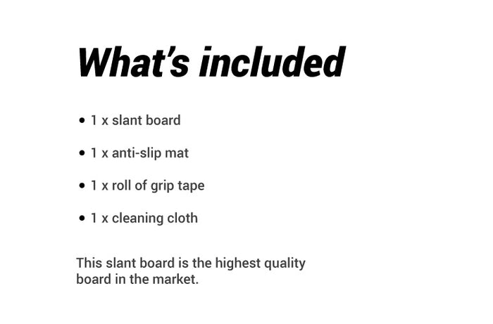 JEDES VMO BOARD INKLUDIERT: Jedes VMO Board enthält 1 x Schrägbrett, 1 x Antischlupfmatsche, 1 x Rolle Griffband und 1 x Reinigungstuch. Dieses Schrägbrett ist die qualitativ hochwertigste Platte auf dem Markt.