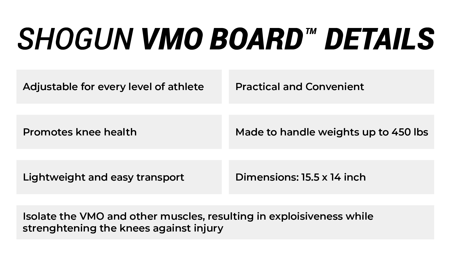 ESSENTIEL FÜR DIE ATG-TRAINING: Das VMO Board ist für mehrere Übungen in der ATG-Trainingsphilosophie unerlässlich, einschließlich der Unterschenkeldehnung, schrägen Squats, Split Squats und Poliquin-Pulse, die helfen, den VMO-Muskel, die Tibialis und andere Muskeln zu isolieren und dabei die Knie schützen, die Bewegungsfreiheit verbessern, die Verletzungsgefahr verringern und die Explosivität entwickeln.